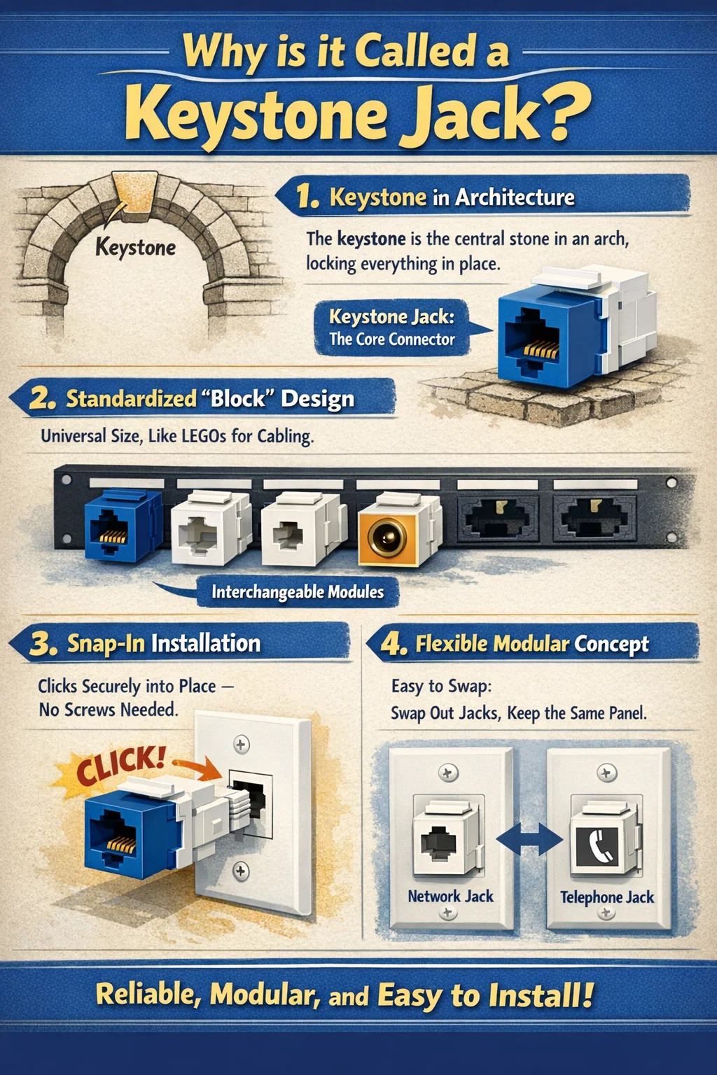 Ağ ürünleri bu terimi temel olarak ödünç aldı çünkü Keystone Jack modüler kablolama sistemlerinde de benzer bir rol oynar: